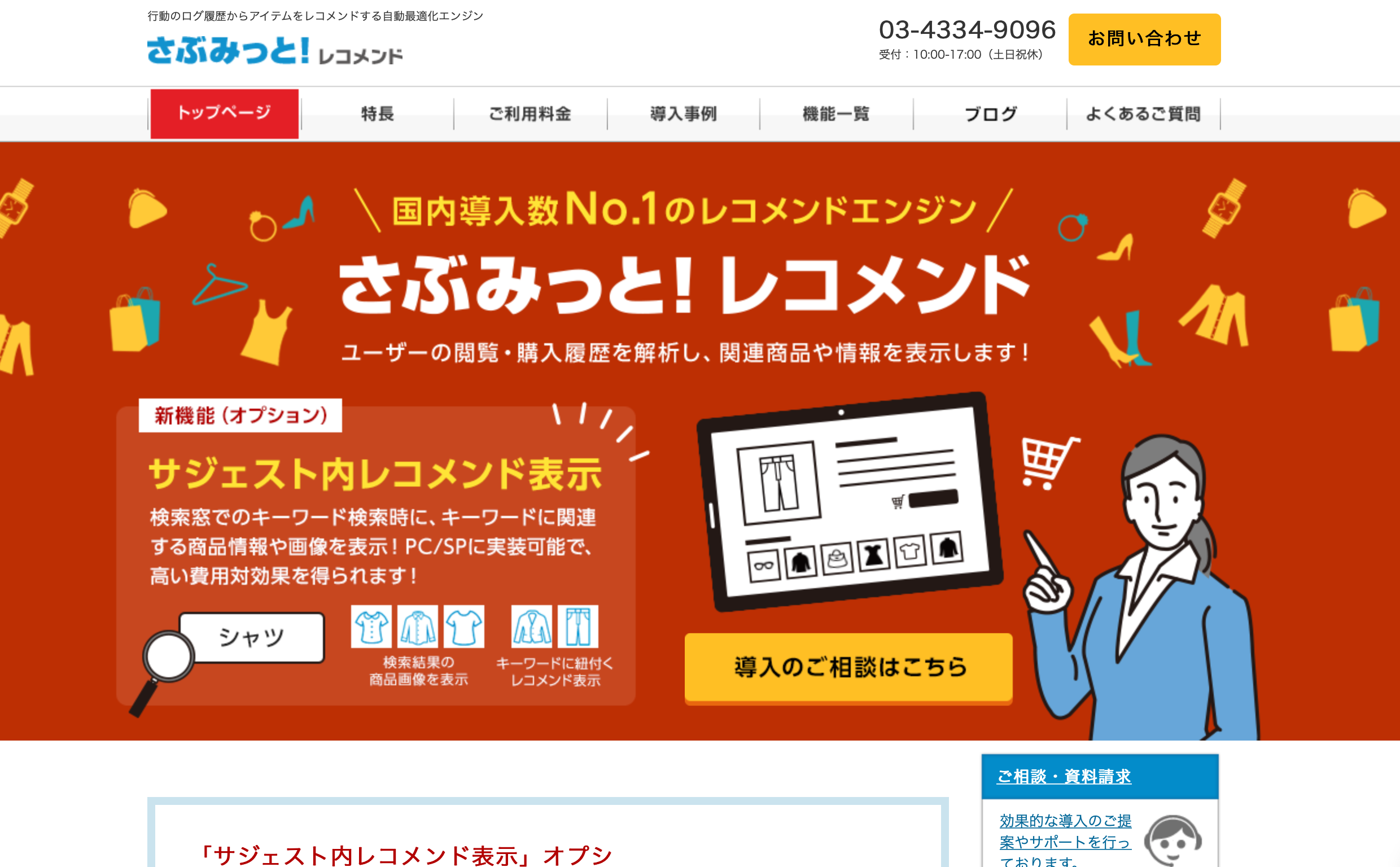 「さぶみっと!レコメンド」は国内シェア数NO.1のレコメンドエンジン提供サービスになります。