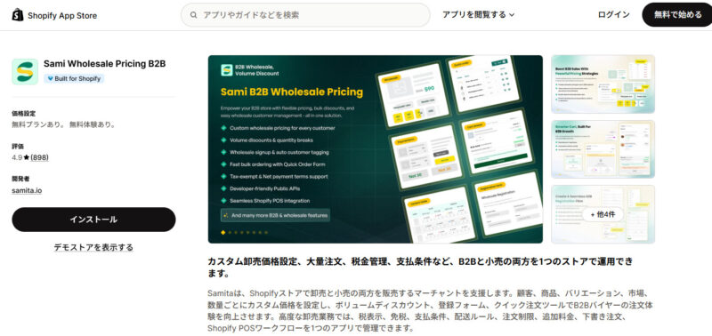 ShopifyでBtoB ECを始める方法としては、Shopify Plusではなく、通常プランにBtoB向けアプリを追加して構築する方法もあります。