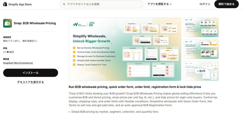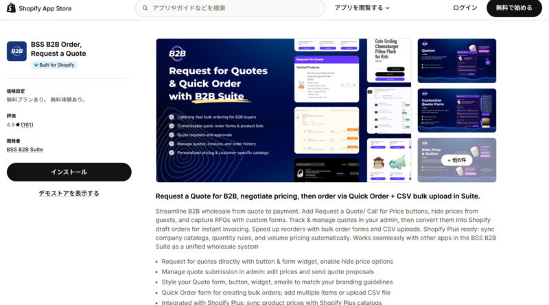 また、Shopifyの通常プランでもアプリを活用すれば、一定範囲のBtoB運用は実現できます。